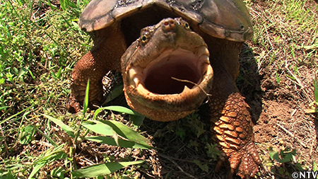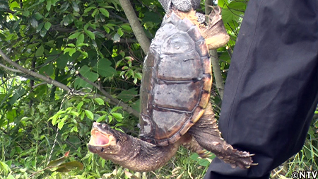 生物『カミツキガメ』 原産地アメリカ大陸原産の夜行性で、緩やかな流れの水辺に生息し、とくに水生植物や岩、沈水木などが多い場所を好む。 問題1960年代に愛玩用に輸入され、数年前までペット用に大量に流通。 |