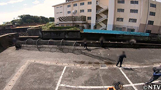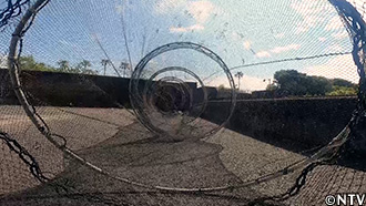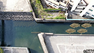 網は普段、海で使っている、直径1.5m、奥行き8m、幅15mの魚を溜めるポケット部分を利用。 |