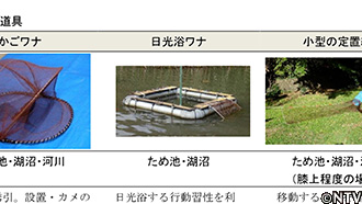 日光浴を好む習性を生かして、環境省が推奨する「日光浴ワナ」を仕掛ける。 |