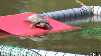 生物『ミシシッピアカミミガメ』 原産地アメリカ原産。 問題1950年代にアメリカから持ち込まれ、かつて祭りの縁日で売られていた幼体(ミドリガメ)がペットとして人気となったが、大きくなって野外に放たれることなどで全国的に繁殖。 |