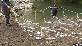 (3)川幅いっぱいに刺し網を仕掛ける。 |