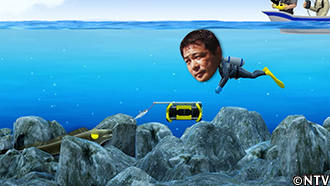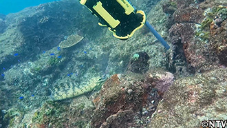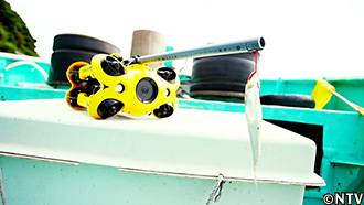 水中の加藤がウツボを捜索、船上のリチャードと連携を取り、城島が操縦する水中ドローンで近づいて釣り上げる。 |
