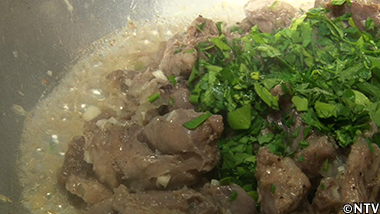 (3)玉ねぎとにんにくのみじん切り・煮汁を加え、水分が無くなるまで煮、イタリアンパセリを加える。 |