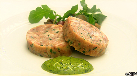 (5)そのまま冷蔵庫に入れて冷やし、スライスして、野菜などを添えて盛り付ける。 |