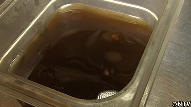 (1)カミツキガメの肉の煮汁を、リードペーパーやコーヒーフィルターで濾す。 |