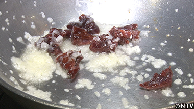 濃厚な味のカミツキガメの旨味が凝縮されたコラーゲンのため、味付けはシンプルに塩のみで行いました。