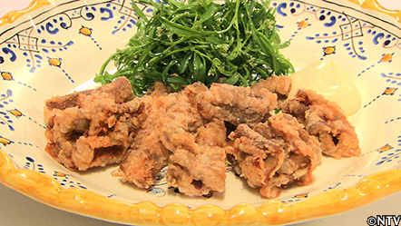 (4)水気を取り、薄力粉をまぶし、175℃の油で揚げる。 |