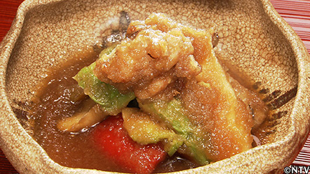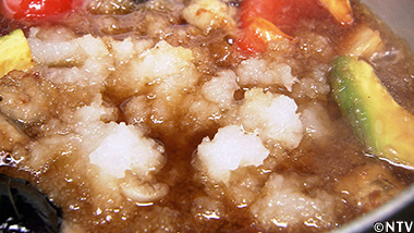 (5)さらに、大根おろしの辛みで肉の臭みを抜き、甘さを上乗せする。 |