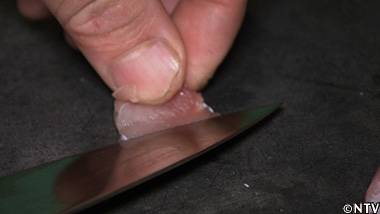 (1)ふくらはぎ肉を鶏肉大に開く。 |
