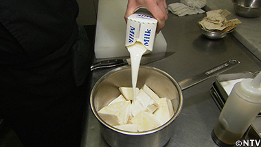 根セロリの皮をむき、小さく切り分けて鍋に入れ、牛乳、塩を加えて、柔らかくなるまで煮る。 |