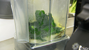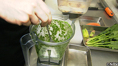 この根セロリと煮詰めた生クリームを、なめらかになるまでミキサーにかければ、根セロリのピュレが完成。 |