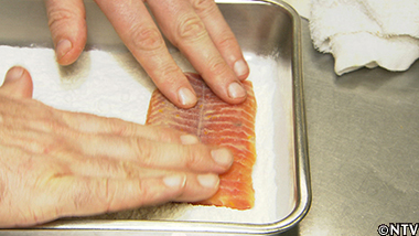 クララの身に、塩、こしょうで下味をつけ、小麦粉をつける。 |