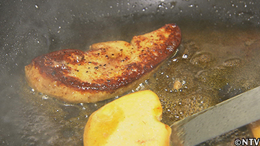 鴨のフォアグラをポワレし冷ます。 |