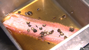 (2)臭いを消すためにカリマンタン産の生コショウを刻んで加える。 |