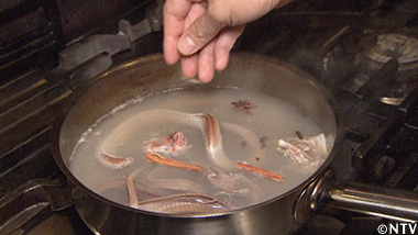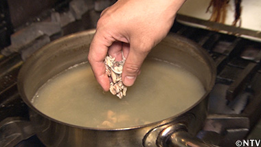(2)中華料理の臭み取りに欠かせない、八角、シナモン、クローブを加え、味が出たら全て取り出す。 |