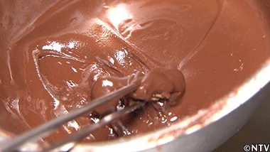(4)最後に、揚げたタイワンハブの皮をチョコレートでコーティング。 |