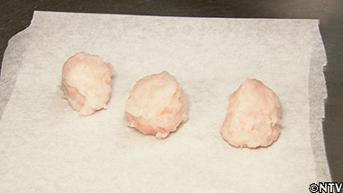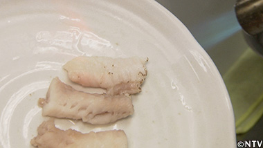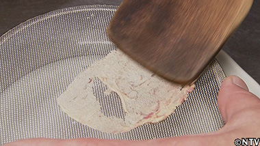 (3)塩をふったクサウオの肝を30秒茹でて、裏ごしする。 |