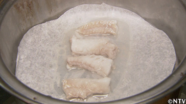 (2)お腹の身を切り、蒸す。 |