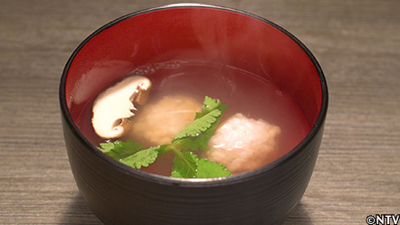 (6)濾した出汁にレモンを加え、レモンを加えて、冷蔵庫で冷やして固める。 |