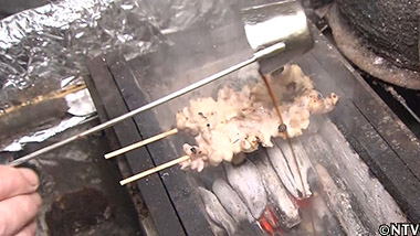 (3)炭火で高温で焼いて、旨味を閉じ込める。 |