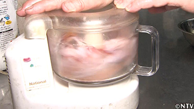 (1)硬いすね肉と手の肉をミキサーにかける。 |