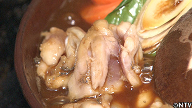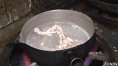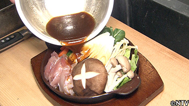 (1)ウシガエルの骨でとった出汁に、秘伝のタレ、赤味噌を混ぜて特製の割り下に。 |