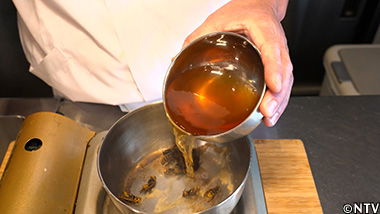 (4)天つゆは空炒りしたキイロスズメバチにカツオ昆布出汁を加えて煮出す。 |