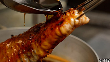 (2)淡白なので濃いめのタレを塗った蒲焼きに。 |