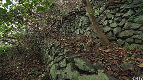 森の先は、山。その急こう配の斜面には、石垣が築かれている。