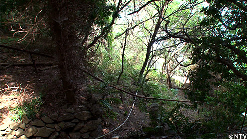 城島がたまたま見つけた、浜辺から山の奥へ延びる、細い鉄のレール。 電車の線路のように二本ではなく一本のレールで、収穫物を運ぶ農業用のモノレールと酷似。 レールは斜面の上に向かって伸び、辿っていった先には、小さな小屋が残っていた。