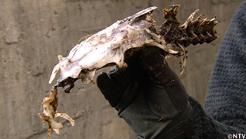 ため池の生態調査をしている際に、タモで池の底からすくった骨。