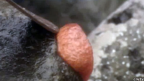 ホヤの仲間で、本州中部よりフィリピンにわたって分布。流れの少ない入り江や湾などにふつうに見られ、岩などに半球状の塊の姿でくっついている。ホヤには“単体ホヤ"と“群体ホヤ"があり、マンジュウボヤは後者。群体は個虫と呼ばれる、無性生殖によって増えていった数mm程度の生物がたくさん集まってできている。主に海中のプランクトンを食べる。海水温が上昇すると群体の崩壊が始まり、やがて岩の表面から剥がれ落ちてしまう。