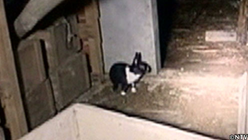 倉庫跡に設置した観察用カメラの映像に映っていたウサギ。