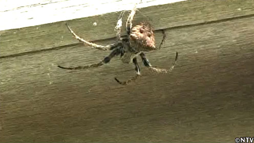 日本全国に分布し、家の軒下、樹間、神社や寺院の周囲などに円い網を張る、体長2cmほどの大型のクモ。灰褐色をしており、腹部後半に黒い波型の縦筋がある。メスの方が若干体が大きい。昼間は物陰に潜み脚を縮めてじっとしているが、夕方から夜にかけて大型の円網を張り、その中心に静止する。朝になると再び網から離れ物陰に潜む。その際大阪以西のオニグモはほとんどのものが網をこわすが,東京以北のものはほとんどこわすことはない。