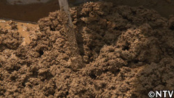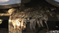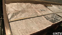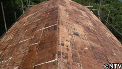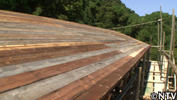 土葺きの場合、土の下に杉の皮を敷いて、染み込んでくる雨水から屋根を守る。 |