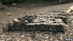 DASH村の母屋に使った茅葺きには大量の茅が必要なため、舟屋は島で材料が揃いそうな“土葺き"に。 |