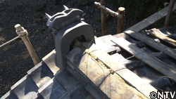 鬼瓦は、もともと厄除けの意味があるが、雨水の浸入を防ぐ役割も果たす。 |