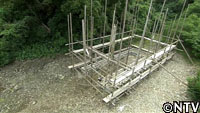 こちら、基地となる舟屋の骨組み作業は、最終段階。 |