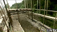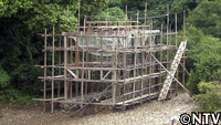 強い柱を実現するため、休みなく作業を続けていた舟屋の足場が組み上がった。 |