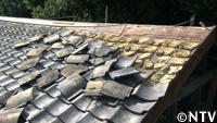 そして、瓦葺きも大詰めを迎えようとしていた中、大型の台風が島を直撃。 |