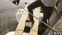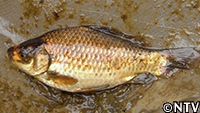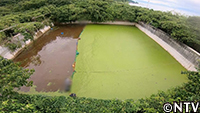 およそ100日の自粛期間中、誰もDASH島に上陸できなかったことで、養殖池一面に大量繁殖したウキクサ。 |
