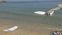 気温が上昇するこの時期、港跡には大量のクラゲが発生。 |