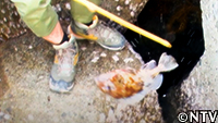 寒さ厳しい2月、城島とシンタローは岩場でDASH島の冬の名物・マガキを獲っていた。 |
