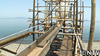 無人島に運搬革命を起こすべく、男たちは木の枝葉が落ちる冬を狙い、“ロープウエー計画"を再開した。 |