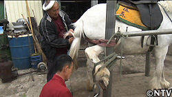 蹄を削って、その馬に合わせた蹄鉄を打つことは、明治の初めより普及。日本ではそれまで、馬にわらじのような馬沓(うまぐつ)を結んで履かせていた。