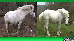 換毛(かんもう)と言い、被毛の抜け替わりのこと。 野生山にいる道産子は、夏毛(5月~6月)、冬毛(9月頃)に、馬小屋で飼われている道産子は、夏毛(4月~5月)、冬毛(10月頃)に毛が抜け変わる。 野生の道産子は厳しい寒さから身を守るために、暖かくなるまでは抜けない様。 野生の道産子は生え換わる際、木に擦りつけて自分の毛を落とす。