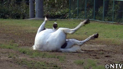 馬は群棲動物(ぐんせいどうぶつ:集団でくらす動物)なので、単独行動は苦手。馬群の中では落ち着いていても、1頭だけにするととたんに不安になってしまう。馬を飼育するには、こうした野生の本能に対する正しい理解と認識が必要で、馬とのコミュニケーションを改善することにも役立つ。 道子は仲間たちと離れて少し落ち着かない様子だったが、じきに慣れてきたようだ。