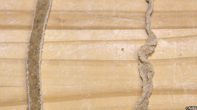 この原因は、浅ごね。あまりのグルテンの多さに、捏ねが足りず、かん水が行き渡ったのは表面だけで、中までしっかりと捏ねれていなかった。
