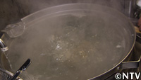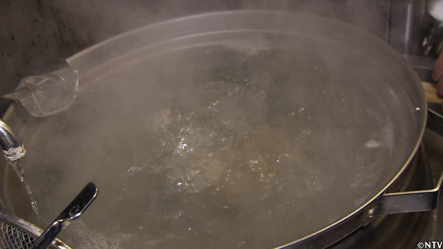 熱湯で、手揉みした麺を茹でる。