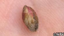 続いての作業は、未成熟の小麦やゴミなどを取り除く選り分け。 |